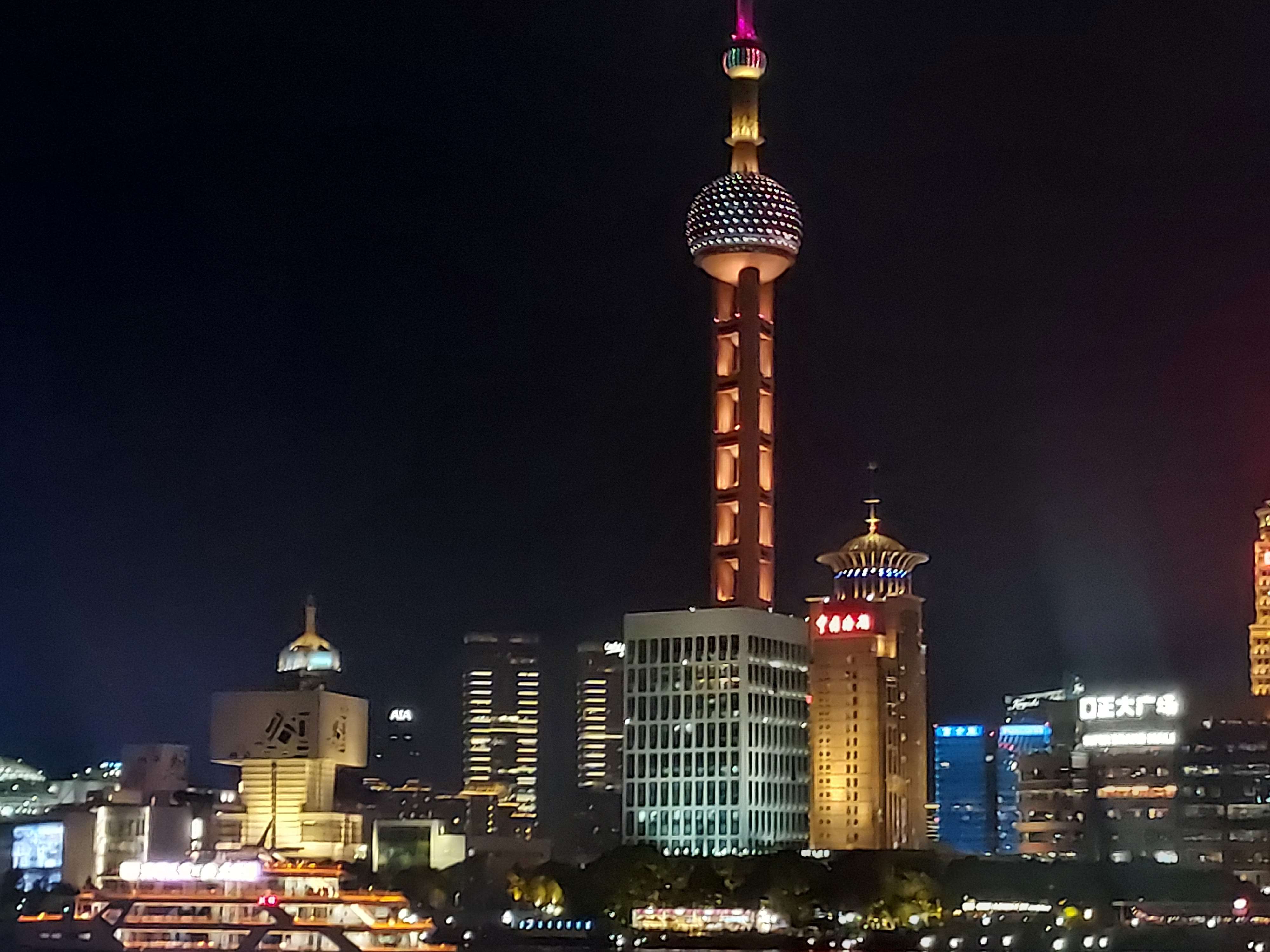 不免俗的吐槽時間:可以不要在黃浦江上的渡輪還放超級大的廣告嗎?真的很煞風景,當我在欣賞夜晚版本的東方明珠時,一個大白兔從下面跑過去非常的奇怪,不過大白兔到底付了多少錢才可以有這種待遇呢?